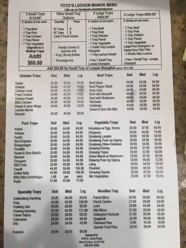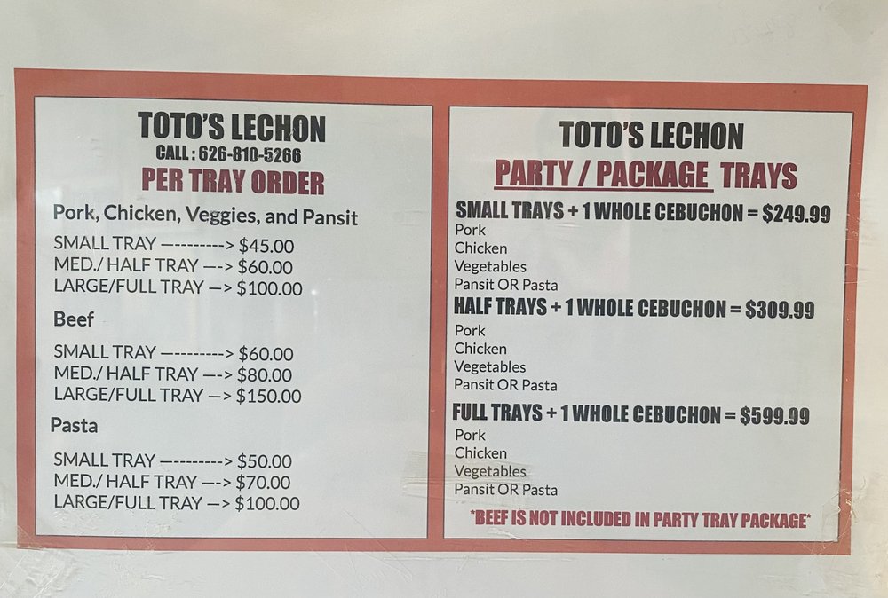 Introducing Toto's Lechon, a culinary gem located in West Covina, CA, specializing in authentic Filipino flavors. With a menu that celebrates traditional pork dishes, it offers a variety of options, including Caldereta, Afritada, and the famously mouthwatering Lechon. Customers rave about the quality and taste, with reviews highlighting the delicious lechon sisig—a perfect combination of meaty, fatty, and umami flavors, served alongside fluffy white rice.